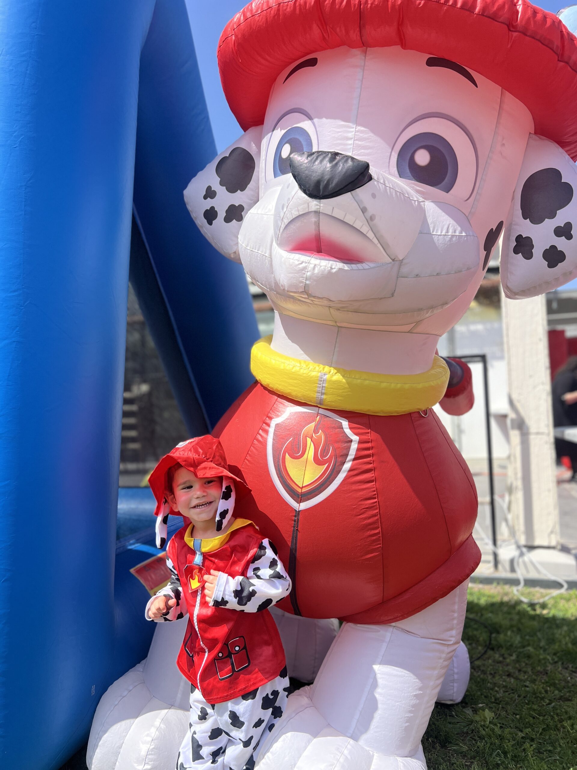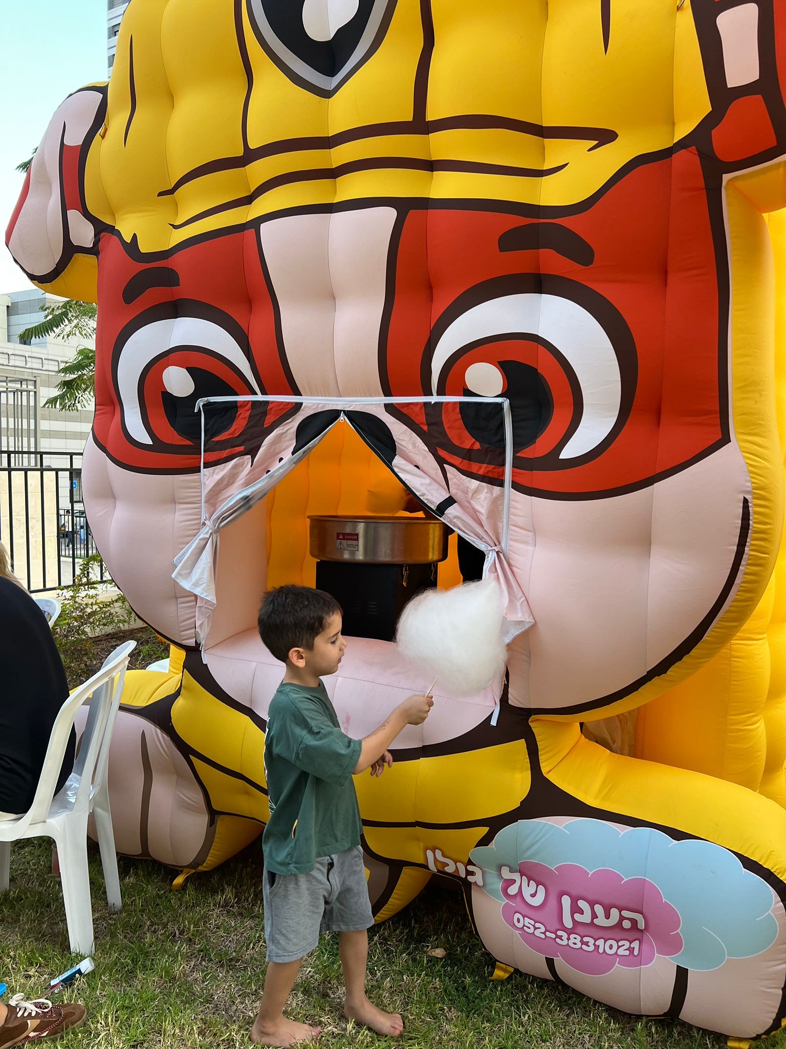 - בובת ענק מתנפחת עם איש צוות הרוקד עם הילדים בקבלת הפנים ובטקס העוגה